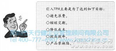 產(chǎn)品詳細(xì)介紹一、TPM管理的定義 TPM管理,在中國被稱為全員生產(chǎn)維修,是一種維修工作流程,也是一種生產(chǎn)現(xiàn)場設(shè)備的日!胺栏忻搬t(yī)療技術(shù)”。其目的在于提高生產(chǎn)率。