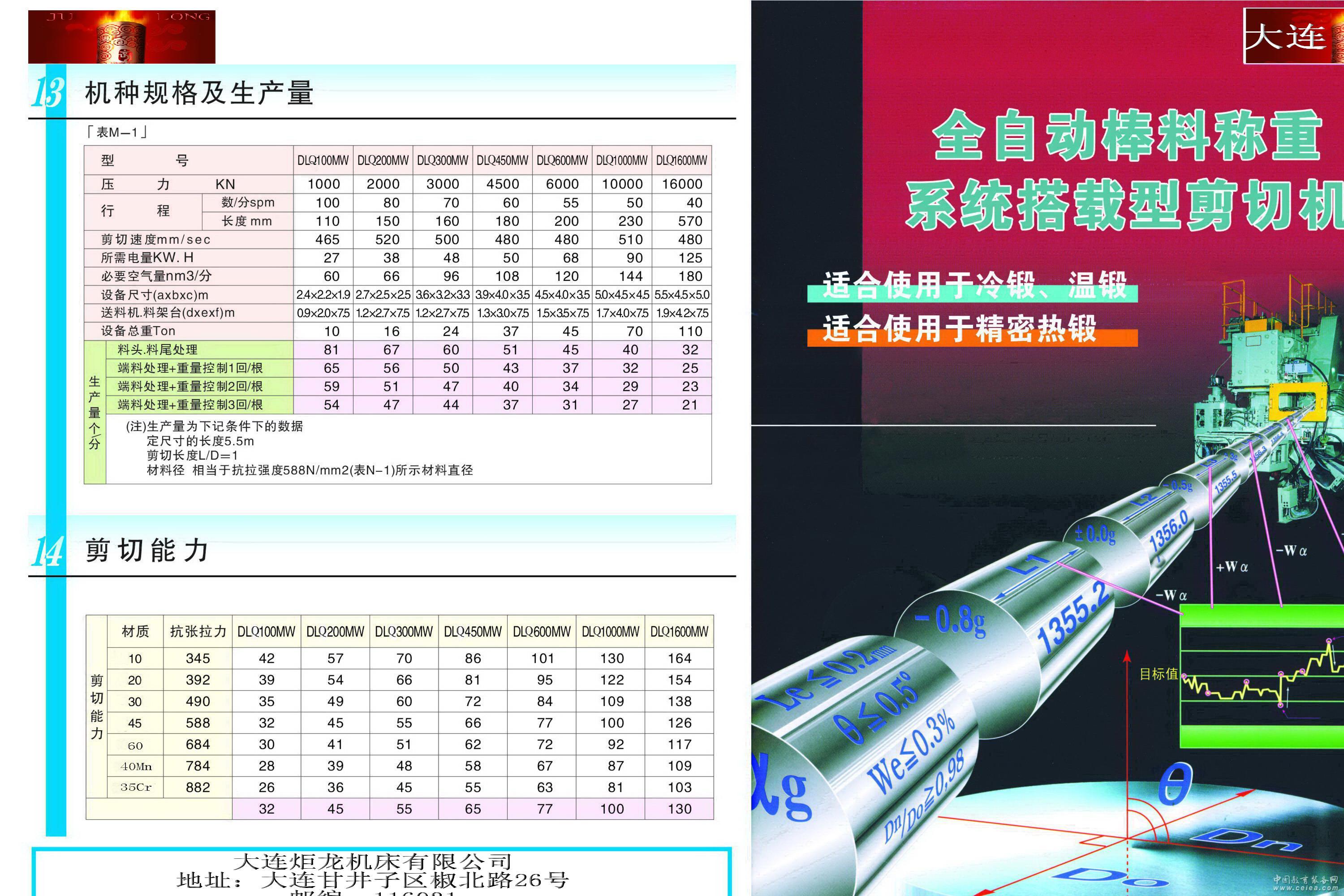 大連炬龍高效圓鋼切割機(jī),切斷效率20-100次/分鐘,剪切表面圓度在95%--98%,表面傾斜度在0.5-1.5度以?xún)?nèi),加工噸位從100噸-1400噸. A剪切視屏http://v.youku.com/v_show/id_XNDMwNTk4Njcy.html B剪切視屏http://www.tudou.com/programs/view/ZrFadFJ-vbs/ |