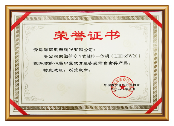 第74屆中國教育裝備展示會(huì)金獎(jiǎng)產(chǎn)品—海信交互式觸控一體機(jī)(LED65W20)