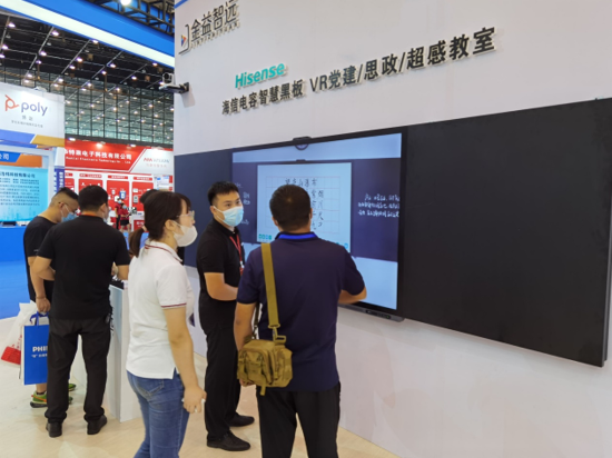 除了展出智慧辦公產(chǎn)品及解決方案,在教育方面,海信商用顯示還展出了最新款海信Vision Board智慧黑板智享版S系列及海信紅外一體機(jī)組成的VR黨建、思政、超感教室方案,集教、學(xué)、考、評(píng)、管為一體的五大場景方案,吸引眾多觀眾參觀體驗(yàn)。優(yōu)秀的顯示畫質(zhì)、流暢的書寫體驗(yàn)、豐富的教學(xué)工具、簡單易用等優(yōu)勢,給大家留下了深刻的印象。