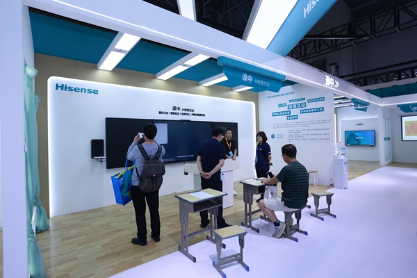 展會現場,海信智慧教育新品全陣容亮相,圍繞課前、課中、課后、管理等教學流程,深度展示了AI等技術賦能下的全新教學圖景。課前,海信基于AI數字化大模型,可幫助老師一鍵生成教學課件,在完成高質量備課的同時,更為老師節省精力與時間;課中,海信在現場展出了AI紙筆互動、互動研討、激光護眼顯示、AI錄播、虛擬仿真教學等多個教學場景,針對教學細分痛點打造了差異化解決方案,幫助老師提高教學效率,幫助學生深入課堂學習。課后,海信可為學生提供個性化學習方案,基于學情大數據分析精準生成靶向作業,幫助學生更有針對性地進行學習,提高學習效率。此外,海信還展出AI巡課督導等校園管理平臺,為班級督導、聽課、查課提供便利,該平臺還具備強大的學生行為分析能力,幫助學校進行高效管理。
