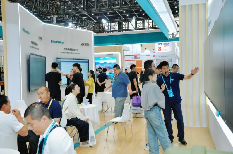 現場,海信商用顯示作為獨家冠名商,以384平方米超大展位亮相展會,以場景化方案展現了科技賦能教育數字化轉型的深厚實力。
