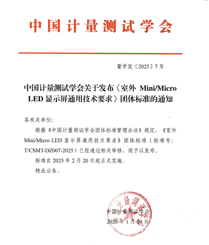 近日,中國(guó)計(jì)量測(cè)試學(xué)會(huì)正式發(fā)布《室外Mini/Micro LED顯示屏通用技術(shù)要求》標(biāo)準(zhǔn)。海信憑借在LED行業(yè)深厚的技術(shù)積累和影響力,主持此次標(biāo)準(zhǔn)制定,再次彰顯了海信在LED顯示領(lǐng)域的專(zhuān)業(yè)實(shí)力和行業(yè)地位。