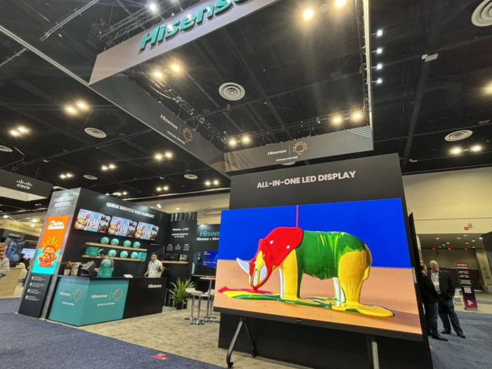 當地時間6月11日至6月13日,全球專業視聽領域盛會InfoComm 2025在美國奧蘭多舉行。海信商用顯示攜場景智慧顯示產品及解決方案亮相,展品涵蓋136英寸COB LED一體機、得來速餐廳場景戶外COB、7*24小時數字標牌DM系列、7*16小時數字標牌DP系列、智慧觸控一體機、商用激光投影及信發集控平臺VisionInfo等,并聯合海信4K三色激光影院產品參展,為零售、教育、辦公、文體娛樂等場景提供數字化轉型新范式。