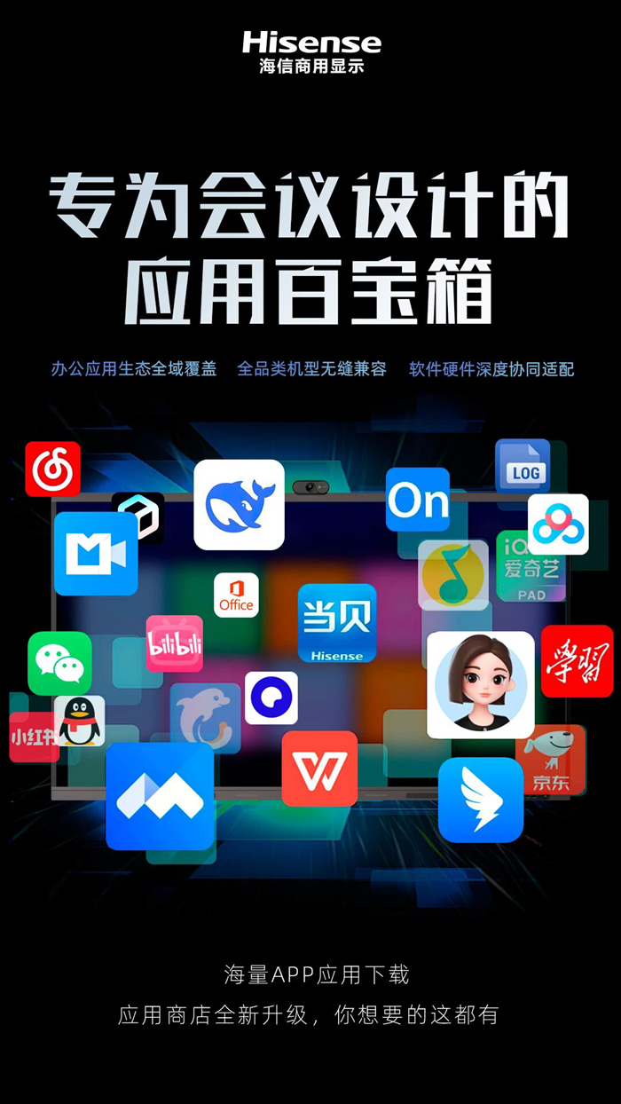 此次應(yīng)用軟件上新覆蓋海信會(huì)議平板、會(huì)議電視全系列上市機(jī)型,無論您使用的是輕量級(jí)入門款還是旗艦級(jí)智能終端,均可一鍵同步應(yīng)用生態(tài) —— 只需打開設(shè)備內(nèi)置應(yīng)用商店,即可快速獲取專屬適配版本。