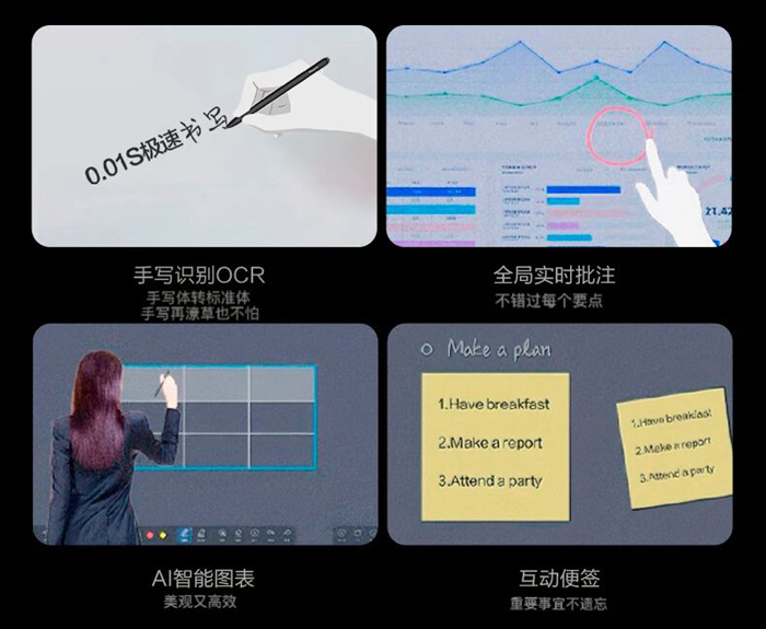 毫秒級(jí)跟手白板,40點(diǎn)觸控,支持多人同時(shí)在大屏上進(jìn)行批注、拖拽和修改。在近乎無(wú)限延展的屏幕空間上自由寫作,保證思路不斷片。