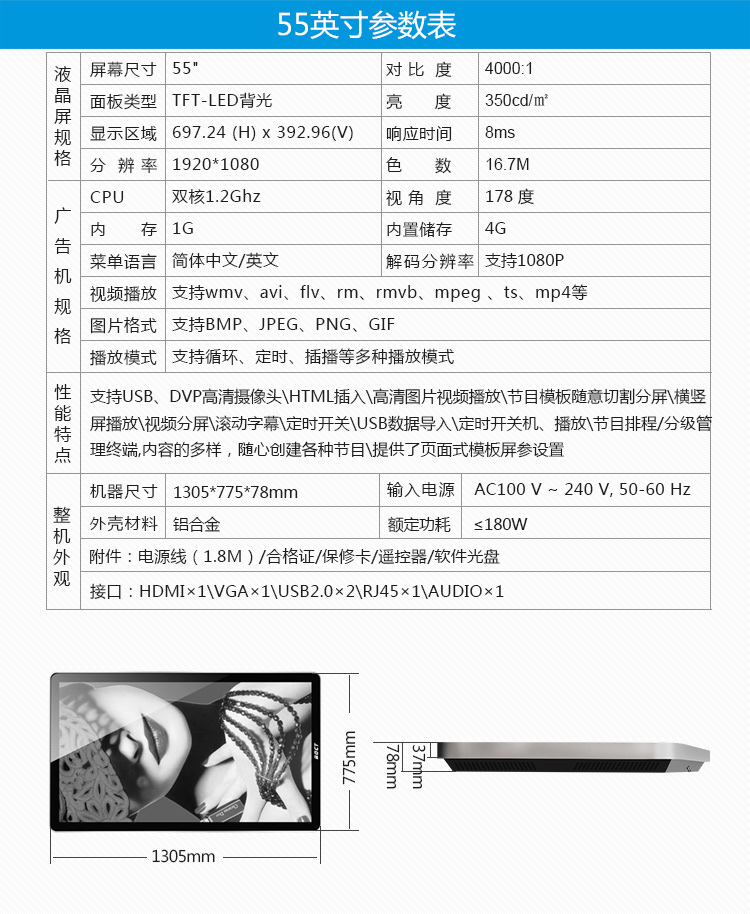中銀(BOCT)55英寸壁掛式網絡版廣告機