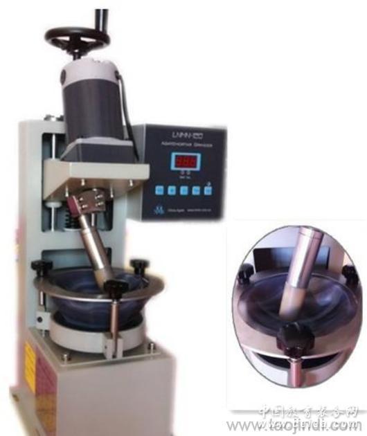 1、被研磨加工的是粒徑較粗的固體顆粒,放在瑪瑙研缽里; 2、瑪瑙研缽的底面是一個嚴格意義上的半球面,堅硬、耐磨、十分光滑,瑪瑙研缽由慢轉速的減速電機驅動進行自轉; 3、瑪瑙研棒的棒頭也是一個嚴格意義上的半球面,研棒的中心線與研缽中心線相交成一個比較合適的斜角度。研棒伸入研缽內,研棒內設置了壓縮彈簧,棒頭在彈簧的作用下與研缽底部緊緊貼在在一起。研棒被快轉速的減速電機驅動,做類似于錐形體錐面軌跡的轉動。 4、研缽和研棒,各自的這種運動,對粗顆粒形成了一種巧妙的碾壓式研磨。 5、由于瑪瑙研缽和研棒所形成的研磨運動,對固體顆粒的研磨機會都是均等的,微粉粒度非常均勻。研磨時間根據需要而設定,并實現自動化控制。通過設定的一個合理的時間段的研磨之后,粗顆粒被研磨成為很細的微粉顆粒,顆粒粒度能達到微米級,有的能達到納米級。