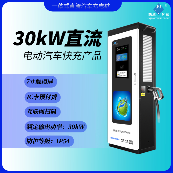 產品詳細介紹品牌:際慶科技 型號:30KW直流充電樁 1.產品型號:DC30S/D31 2.外形尺寸(寬深高):550*250*1600mm 3.外殼材質:鈑金 4.輸入電壓:AC380V±15% 5.額定輸出功率:30kW 6.充電樁自帶充電槍,電纜長度5米 7.具備功能:IC卡預付費、互聯網掃碼 8.人機交互形式:7寸觸摸屏 9.防護等級:IP54
