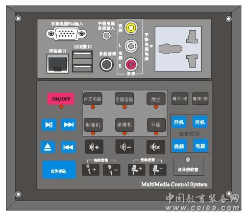 CM1400: 內置3*2RGB出切換分配器,帶400MHZ長線驅動器,支持臺式電腦、筆記本電腦、數字展示臺的輸入;控制面板和電源控制盒分離。 • 自帶投影機保護功能、檢測投影機燈泡的工作情況,并且自動延時斷電。更好的保護投影機的壽命; • 內嵌式紅外學習功能,無須配置專業學習器,使用更簡單,學習更可靠; • 內置6*2音視頻矩陣,視頻頻寬大100MHZ • 1路可編程RS-232控制接口,可用RS-232控制投影機 • 2路I/O控制接口,具有投影機防盜報警功能,并可連接門磁開關、安防設備,實現連鎖控制; • 2路紅外發射接口,可紅外自學習控制投影機; • 2路MIC輸入,方便用戶講解; • 強弱電分離,電源盒內置電動屏幕電源控制,2路設備電源控制(2路時序電源,1路看門狗投影機專用電源),采用專用電源,輸入12V/2A,性能更穩定。• 內置3路高保真無級音量調節; 。內置網絡模塊插槽(可選配網絡模塊)支持遠程網絡控制; 控制面板和電源控制盒分離。控制界面:1路網絡接口、2路USB接口、話筒接口、筆記本電腦音頻、筆記本VGA口、筆計本電源插口及防塵蓋; 開孔尺寸:149mm×149mm |