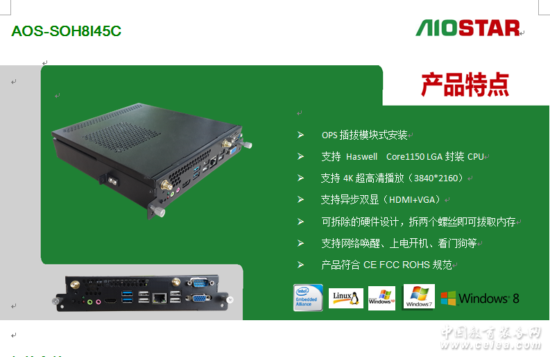 AIOSTAR AOS-SOH8I45C OPS教育設(shè)備專業(yè)電腦