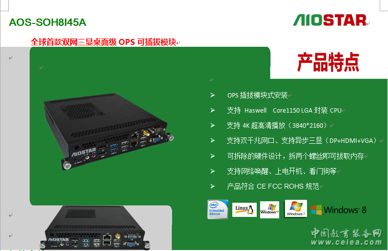 AIOSTAR AOS-SOH8I45A 巨龍CVT鴻合OPS電腦