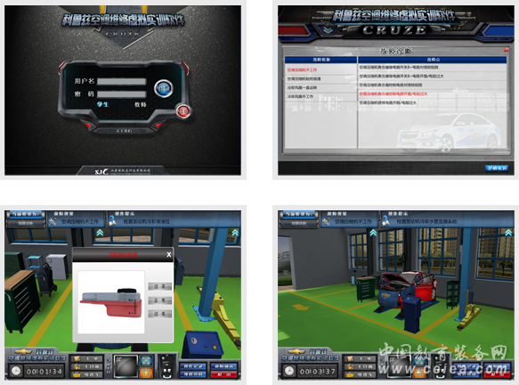 產品詳細介紹軟件車型選用雪佛蘭科魯茲,實訓場景采用3D實時渲染技術 ,可實現場景360度旋轉,平移等功能?蓪崟r通過鼠標與場景進行交互操作。軟件含有多種常見故障現象分別為:空調壓縮機不工作、空調壓縮機始終接通、冷卻風扇不工作、冷卻風扇一直轉。 學生通過軟件進行模擬訓練,能夠掌握汽車空調故障診斷流程、操作注意事項和故障診斷設備使用以及空調的一些常用的檢測儀器的使用,提高學生的學習效率。軟件具有考核功能,教師通過后臺信息管理模塊設置考核項目,查看學生考核記錄,了解學生對考核項目的掌握程度并進行綜合評價。 產品特點: ①大賽背景:以全國汽車運用與維修技能大賽為真實背景。 ②知名專家:由多位國內汽車技術方面權威專家全程指導。 ③真實場景:高度仿真4S店工作環境及維修設備。 ④標準工藝:以上海通用建議電路診斷工藝為基礎,結合電路檢修中常見注意事項以及多位汽車技術方面專家指導意見綜合定制。 ⑤龐大功能:操作提示、多種診斷設備使用、資料查詢等。 ⑥海量內容:練習模塊多、專用設備全、診斷形式豐富、維修資料齊全。 ⑦實時記錄:教師通過管理中心查詢學生的實訓情況并及時指導和評價。 ⑧動態引擎:實時反應車輛空調癥狀、故障現象和故障數據。 ⑨交互性強:界面美觀、設計人性化,提供多人同時操作,資源交互快。 |