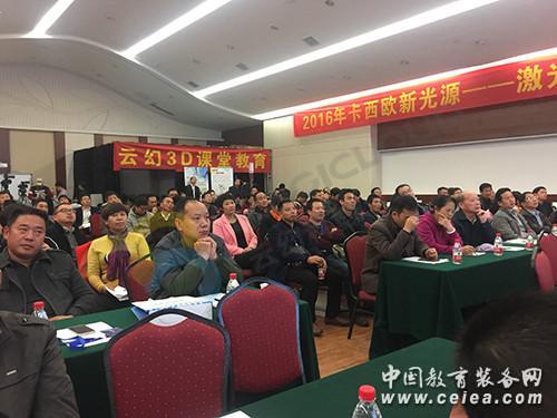 2016年10月29日,由鄭州金益智遠(yuǎn)電子科技有限公司主辦的金益智遠(yuǎn)2016數(shù)字化校園系統(tǒng)產(chǎn)品交流會(huì)在鄭州豐樂農(nóng)莊溫泉會(huì)議中心順利舉行,云幻教育科技股份有限公司作為協(xié)辦單位出席了此次交流會(huì)。交流會(huì)主要參會(huì)人員有鄭州市電教館館長(zhǎng),鄭州市教育局領(lǐng)導(dǎo),鄭州市中小學(xué)校長(zhǎng),鄭州市高等學(xué)院領(lǐng)導(dǎo),各地市系統(tǒng)集成企業(yè)總經(jīng)理等共260余人。云幻科教在交流會(huì)上向出席會(huì)議的領(lǐng)導(dǎo)和來賓介紹3D教育的發(fā)展概況,產(chǎn)品體系,應(yīng)用案例以及云幻科教公司簡(jiǎn)介等內(nèi)容,與會(huì)人員對(duì)3D教學(xué)這種創(chuàng)新教學(xué)模式表示濃厚的興趣。