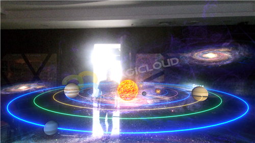 AR技術在教育中使用比較廣泛,深入的研究AR技術下的學與教,對于提升學生的學習效果、教師的教學方法,以及對于教育教學的改革與創新有著重要的作用。AR技術能夠在現實教學環境中增強,充分提高學習者對于環境的感知能力。云幻科教將AR技術與Kinect體感設備結合在一起,AR建造知識模型,Kinect體感設備進行虛實互動,打造AR創新教學模式。