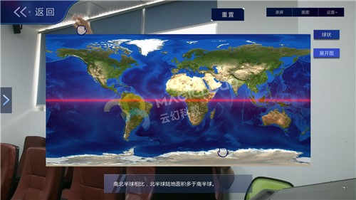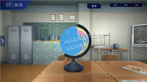 云幻科教VR地理仿真實驗資源通過《麥哲倫航行》故事視頻引入,吸引學生注意力。后續通過虛擬仿真技術模擬地球模型、地球儀等內容進行知識教學,互動操作猶如將地球置于手中,知識可視化、操作趣味化、模式多樣化,集中學生注意力,活躍課堂氣氛,提高教學效率。