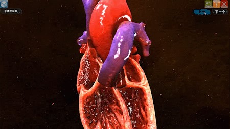 如《心臟和血液循環(huán)》課程,在VR互動教學資源中,首先教師可以給學生展示教學視頻,跟隨著視頻了解心臟的結(jié)構(gòu)、血液流動所經(jīng)過的部位、形成的循環(huán)體系等;其次再通過互動部分對心臟部位進行拆分學習,跟隨著血液經(jīng)過的體循環(huán)與肺循環(huán)相關(guān)部位,對心臟和血液流動形成深刻的認識。學生不僅可以局部放大,還可以操縱鼠標使其在三維層面上任意方向任意角度的觀察。