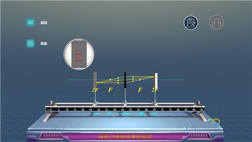 同時(shí)如在探究凸透鏡成像的規(guī)律實(shí)驗(yàn)中,室內(nèi)光線的強(qiáng)弱對(duì)實(shí)驗(yàn)現(xiàn)象有影響,虛擬仿真實(shí)驗(yàn)中不僅避免這個(gè)情況,還增加虛擬輔助線,幫助學(xué)生理解實(shí)驗(yàn)原理。