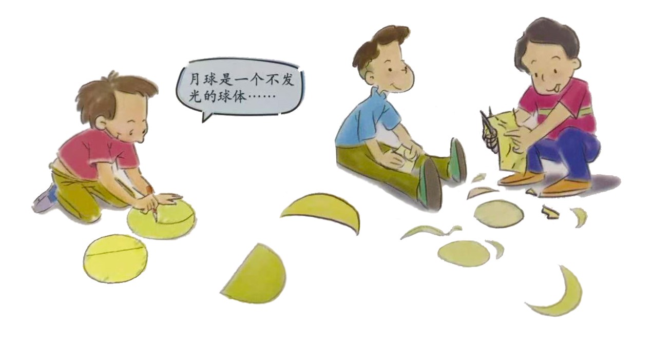 教師給每位同學幾張相同大小的紙片,讓其畫月相。