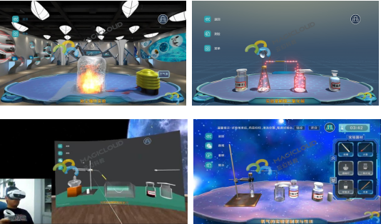 覆蓋初中化學實驗的重點及難點實驗。借助AR技術進行虛實結合,將難以肉眼觀察的分子、原子、元素等通過3D技術展示,模擬各項化學實驗反應,讓學生身臨其境的觸摸難實現(xiàn)、難理解、難觀察的知識,同時避免高危險、高污染的化學物品對學生的危害,降低實驗器材成本。
