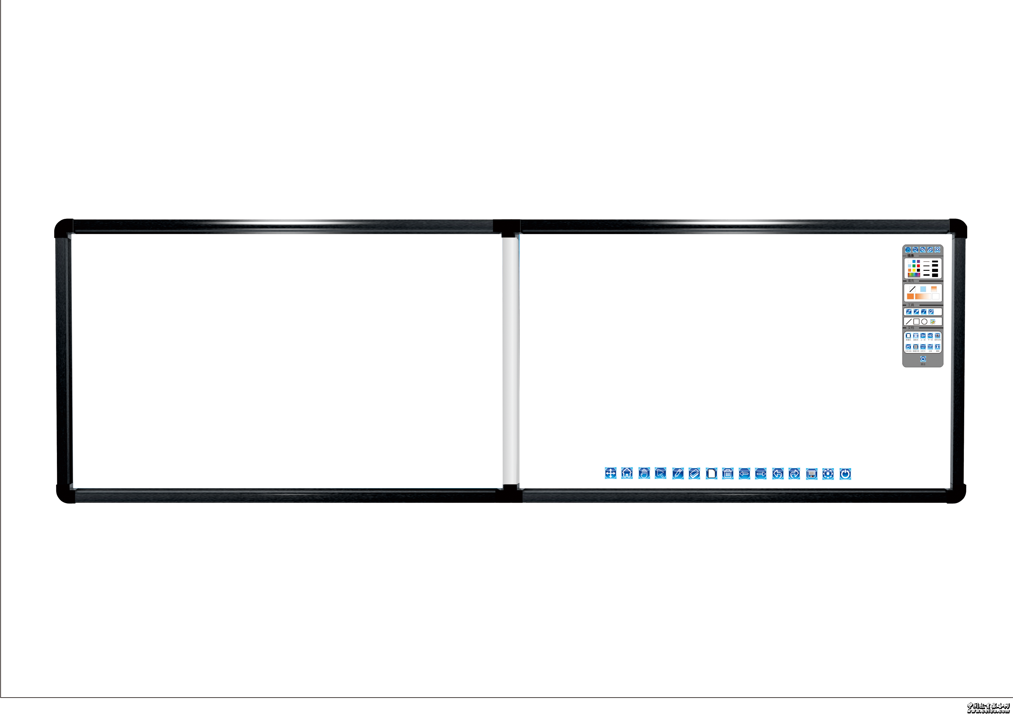 采用兩塊白板拼接方式,一部分作為普通教學(xué)書(shū)寫(xiě)白板,一部分作為互動(dòng)書(shū)寫(xiě)投影白板,兩部分的材質(zhì)是完全相同的互動(dòng)部分可根據(jù)客戶(hù)需求定制不同尺寸。