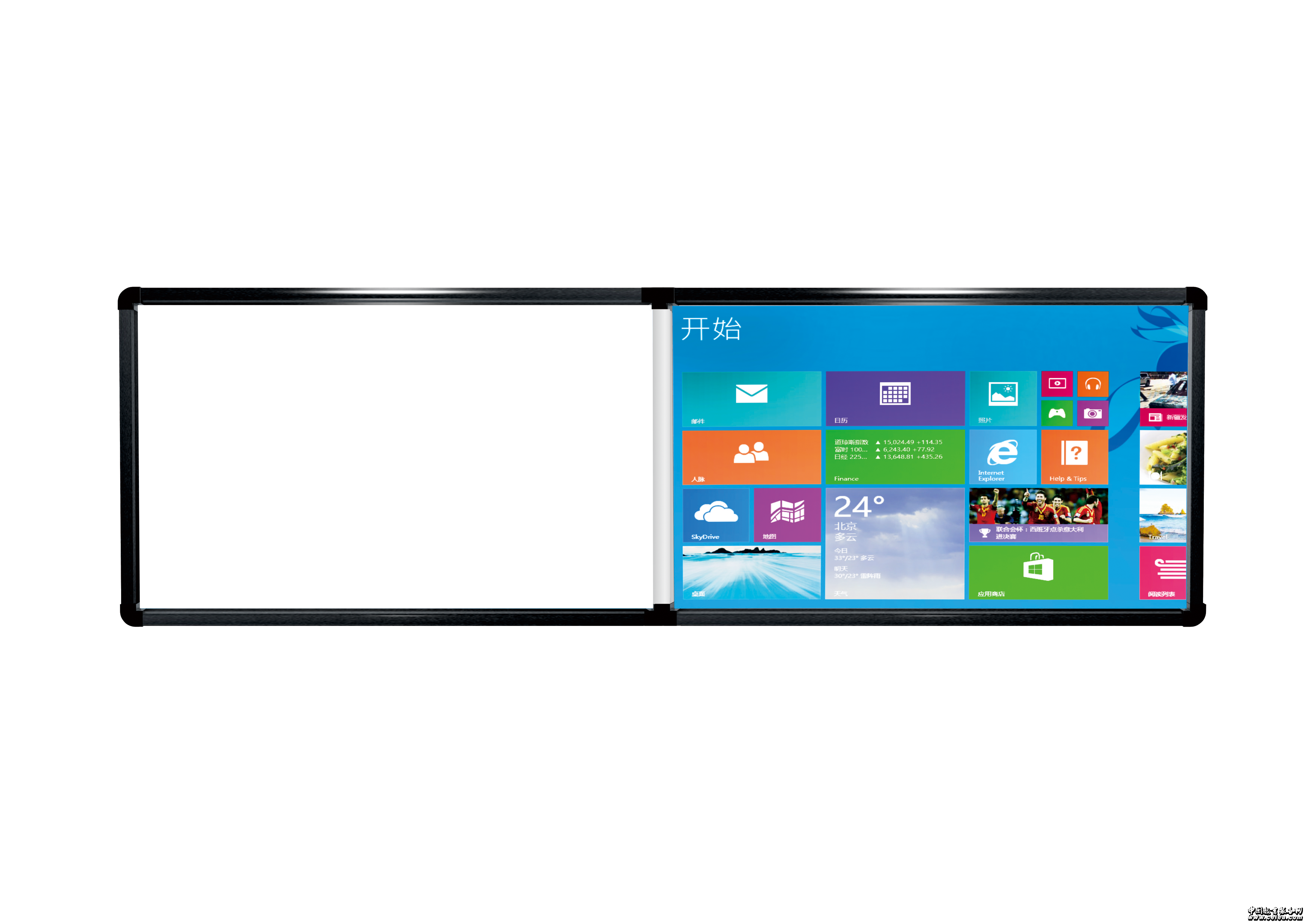 采用兩塊白板拼接方式,一部分作為普通教學書寫白板,一部分作為互動書寫投影白板,兩部分的材質(zhì)是完全相同的互動部分可根據(jù)客戶需求定制不同尺寸。