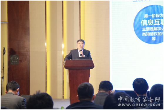然后進入本次論壇的主題演講時間,教育部科技發展中心主任李志民發表了以“信息技術發展與教育變革”為主題的演講,教育已經成為國之重點,技術促進人類文明走向新的臺階,我們需要及時轉變觀念,認真思考,企業及個人只有具有創新思維,才能更好的謀劃未來。