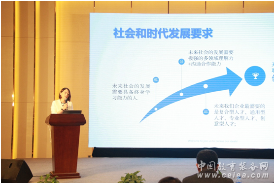 迪樂姆創客課程研發負責人吳迪闡釋了如何利用創客教育推動教育信息化發展,創客最終目的是培養孩子們的自主思考、解決問題、發散思維的能力,迪樂姆作為優質創客教育品牌,深受觀眾關注。