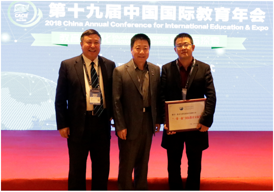 2018年10月20日,在由中國(guó)教育國(guó)際交流協(xié)會(huì)主辦的第十九屆中國(guó)國(guó)際教育年會(huì)期間,教育裝備國(guó)際交流協(xié)會(huì)分會(huì)舉辦了國(guó)際教育裝備與‘一帶一路’建設(shè)專(zhuān)題研討會(huì)。同期舉辦了“一帶一路”國(guó)際教育交流獎(jiǎng)授牌儀式,北京文香榮獲獎(jiǎng)項(xiàng),中國(guó)載人航天工程辦公室主任、航天英雄楊利偉授牌。