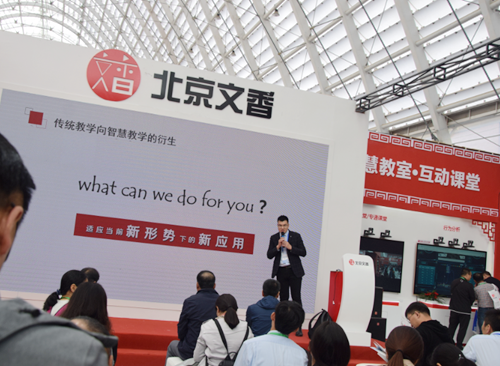 本屆展示會,北京文香攜三代智慧黑板、4k交互平板、純觸控虛擬演播系統亮相,并展示了嵌入式錄播系列產品,圖像跟蹤系列產品,便攜錄播系列產品,智慧教室解決方案、專遞課堂解決方案等。