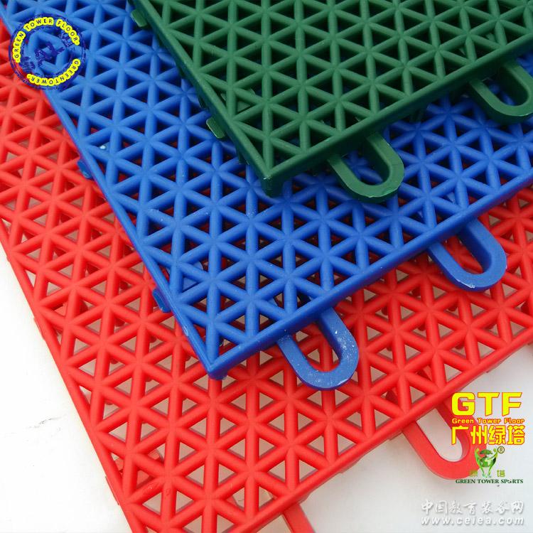 產(chǎn)品詳細(xì)介紹=圓柱三角形懸浮地板LTYZSJX產(chǎn)品特點(diǎn)== 產(chǎn)品名稱(chēng):懸浮式拼裝地板 產(chǎn)品介紹:型號(hào):LTYZSJX 名稱(chēng):懸浮式拼裝地板/圓柱米格地板 尺寸:250*250*12.7mm 使用壽命:8-10年 材料:聚丙烯(PP) 表面形態(tài):圓柱米格 使用溫度:-40℃——80℃ 產(chǎn)品優(yōu)點(diǎn): 1、良好的運(yùn)動(dòng)及保護(hù)性能; 2、拼裝設(shè)計(jì)、容易安裝及拆卸; 3、單片受損單片更換,不影響使用; 4、迅速排水,全天候使用; 5、100%可回收,無(wú)污染,食品級(jí)安全材料,無(wú)毒無(wú)味,無(wú)重金屬; 6、10年超長(zhǎng)使用壽命; 7、顏色多樣,顏色可根據(jù)客戶(hù)需求設(shè)定 拼裝運(yùn)動(dòng)地板特點(diǎn): 1、壽命長(zhǎng): 本產(chǎn)品主要材料為聚丙烯(PP)。綠塔拼裝運(yùn)動(dòng)地板在原料中同時(shí)采用抗寒冷、抗氧化、抗紫外線輻射等多種添加劑,屬改性的工程聚丙烯材料,保證了本產(chǎn)品在全天候(高溫+70°C、-40°C)條件下使用色澤持久、不翹曲、不變形,壽命超過(guò)15年。 2、綠色環(huán)保: 聚丙烯(PP)屬食品級(jí)材料,是無(wú)毒、無(wú)味、不寄生細(xì)菌的綠色環(huán)保產(chǎn)品。 3、多功能性: 產(chǎn)品適用于室內(nèi)外網(wǎng)球場(chǎng)、籃球場(chǎng)、足球場(chǎng)、手球場(chǎng)、羽毛球場(chǎng)、乒乓球場(chǎng)、曲棍球場(chǎng)等體育運(yùn)動(dòng)場(chǎng)地,同時(shí)也適用于健身中心、幼兒園、各種休閑娛樂(lè)場(chǎng)所。尤其是在室外鋪裝鏤空的地板,排水效果好,雨后即可使用,更適合在雨水較多的地區(qū)使用。 4、有效的緩沖性能和高彈性能: 弓形懸浮梁、加強(qiáng)支撐腳技術(shù)的應(yīng)用,使拼裝后的運(yùn)動(dòng)地板具有卓越的減震性能,可有效減少對(duì)運(yùn)動(dòng)員的損傷;同時(shí)能夠增加對(duì)球的回彈性,籃球的反彈率可達(dá)96%(國(guó)家標(biāo)準(zhǔn)GB/T19995.2--2005要求籃球反彈率為90%以上)。 5、標(biāo)準(zhǔn)的防滑值: 在表面防滑處理上,地板的設(shè)計(jì)采用了仿生學(xué)的原理,產(chǎn)品的防滑值達(dá)到了德國(guó)標(biāo)準(zhǔn)DIN18032對(duì)運(yùn)動(dòng)木地板的要求。 6、性?xún)r(jià)比高: 適應(yīng)性強(qiáng)(可適用于室內(nèi)外)、投資少(基礎(chǔ)投資僅僅是PU運(yùn)動(dòng)地板的一半)、壽命長(zhǎng)(是PU塑膠運(yùn)動(dòng)地面的兩倍以上)、質(zhì)量穩(wěn)定(本產(chǎn)品基礎(chǔ)層無(wú)需防水處理,而PU塑膠運(yùn)動(dòng)地板基礎(chǔ)層防水處理不好的情況下可能出現(xiàn)起鼓現(xiàn)象)、色彩豐富(顏色由用戶(hù)選定或提供色樣),安裝、拆卸、更換、移動(dòng)方便,維護(hù)成本低,是各類(lèi)運(yùn)動(dòng)場(chǎng)地的最佳選擇。