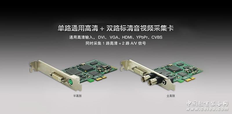 1.單卡走天下 創造性地將 VGA 和標清視頻整合在一起,很多場合需要 VGA 和模擬視頻信號同時采集。教學錄播: 教師機畫面+教師視頻+學生視頻;手術直播: 醫療儀器畫面+手術實況;安全檢查: X 光檢測機+通道視頻;大屏顯示: 多種視頻信號源整合顯示。