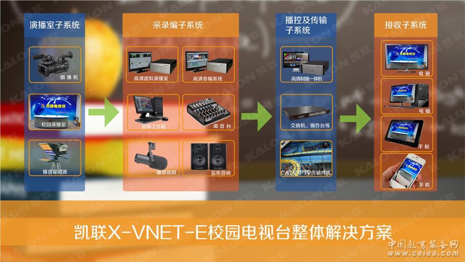 產品詳細介紹西安凱聯電子科技有限公司擁有超過10年的廣播電視行業經驗積累,在電視臺制、播、存、管、傳輸、接收等環節擁有完整的產品線和解決方案。我公司于2012年推出的X-VNET-E校園電視臺整體解決方案在傳統電視臺的業務流程基礎上,結合校園電視臺應用需求,打造的一套操作簡單、使用方便、穩定性高、實用性強、易擴充、開放架構的解決方案,能很好的與現有校園網絡、精品課錄播、校園廣播等已有系統融合對接。整套解決方案分為:演播室子系統、攝錄編子系統、播控及存儲管理子系統、傳輸接收子系統、周邊附屬設備子系統五部分,提供通用標準的解決方案,也可根據不同學校、不同需求量身定制解決方案。