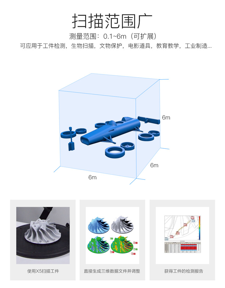 測量范圍(物件尺寸):0.1 ~6米,可擴展