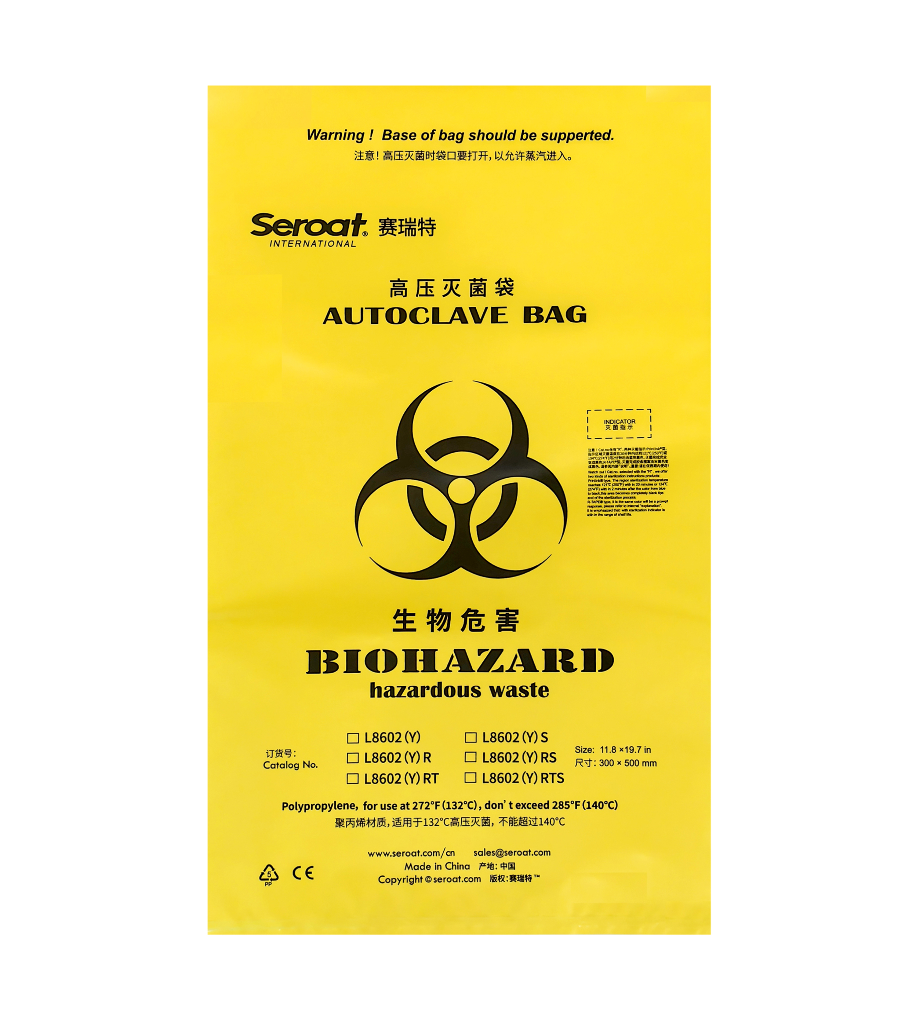 產品特點 ■ 特殊PP聚丙烯材質,機械強度更高,承重能力強 ■ 材質柔軟、堅韌,耐穿刺性能更高,抗撕裂 ■ 耐持續性高溫,可承受最高140℃(285℉) ■ 印刷油墨牢固度高,避免在滅菌中出現掉墨、脫墨、反粘現象 ■ 帶醒目的生物安全標識,中英文印刷版面 ■ 熱變形溫度高,滅菌實驗器具時可以重復使用 ■ 袋身兩側無封口,僅在袋底采用高頻寬型封口,堅固耐用 ■ 可選配專用的彈性封口安全夾,用于滅菌時蒸汽排放和丟棄前封口 ■ 通過ASTM D1922抗撕裂強度與ASTM D1709落鏢沖擊強度測試
