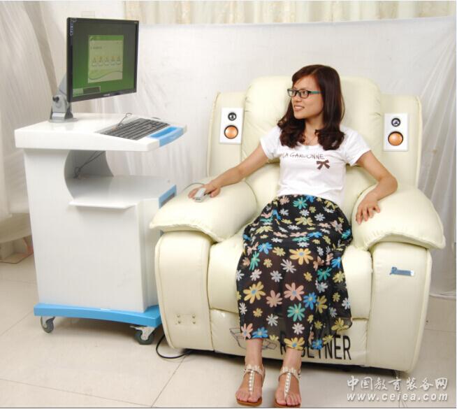 產品詳細介紹 高級的音樂放松椅設備,是一款基于生物反饋原理,結合現代傳感技術、三維虛擬動畫、音樂治療、放松訓練于一體的音樂放松設備。是有體感音樂放松椅和生物反饋軟件組成。功能有:體感震動、音樂放松、生物反饋訓練、可以評估來訪者的放松度、可以生成診療一體的報告。 高級的音樂放松椅設備,是一款基于生物反饋原理,結合現代傳感技術、三維虛擬動畫、音樂治療、放松訓練于一體的音樂放松設備。是有體感音樂放松椅和生物反饋軟件組成。功能有:體感震動、音樂放松、生物反饋訓練、可以評估來訪者的放松度、可以生成診療一體的報告。 一、【身心反饋A型音樂放松椅】產品描述 產品描述: 1、進口小牛皮電動音樂放松椅 1臺 a硬件參數:座椅尺寸:復位狀態:長110CM×寬100CM×高105CM 工作狀態:長170CM×寬100CM×高65CM(椅背展開) 扶手高:65cm;扶手寬:30cm ;坐高:45cm、 產品重量:凈重:45KG;承載量:100KG b外觀材質及設計:音樂放松椅:進口小牛皮面料,不低于5MM厚,可變鋼架,獨立電動控制系統(移動速度:3mm/秒)。直徑圓型ABS手控升降開關。靠背調節角度為90度-170度、腿部調節角度為90度-180度;內部材料為6cm厚高彈力海綿,經過”s”型彈簧仿變形處理; c聲場系統:由五終端構成。頻率響應:80Hz-18KHz 額定功率:45W 供電方式:電源:220V/50Hz 阻抗:4Ω 2、指夾式生理指標采集儀 1個:不少于3米專業指脈式脈博指數、壓力指數,生理指標采集監控器,內置式數模轉換器,多功能信息轉換系器以及數據傳輸線。 3、品牌身心反饋主機+19寸液晶顯示器1套(內置a:音樂反饋系統 1套 b:心理視聽資料 1套)
