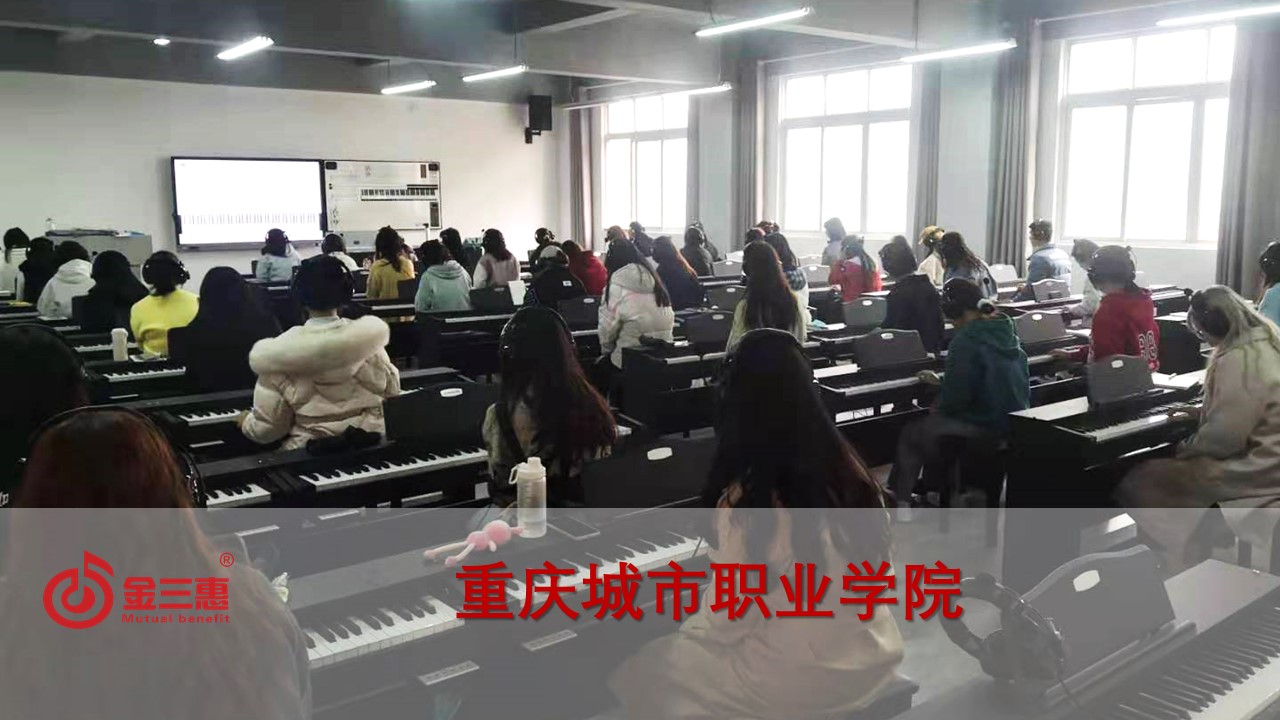 重慶城市職業學院的電鋼琴教室正式開始使用,本校數字化音樂教室由北京金三惠科技有限公司負責提供、安裝、培訓。