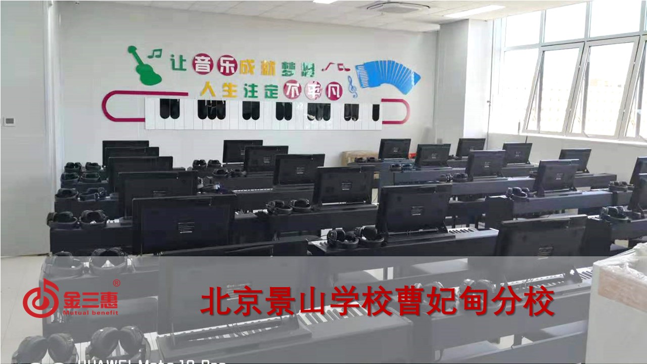 北京景山學校曹妃甸分校智慧音樂創客教室正式開始使用,本校數字化音樂教室由北京金三惠科技有限公司負責提供、安裝、培訓。