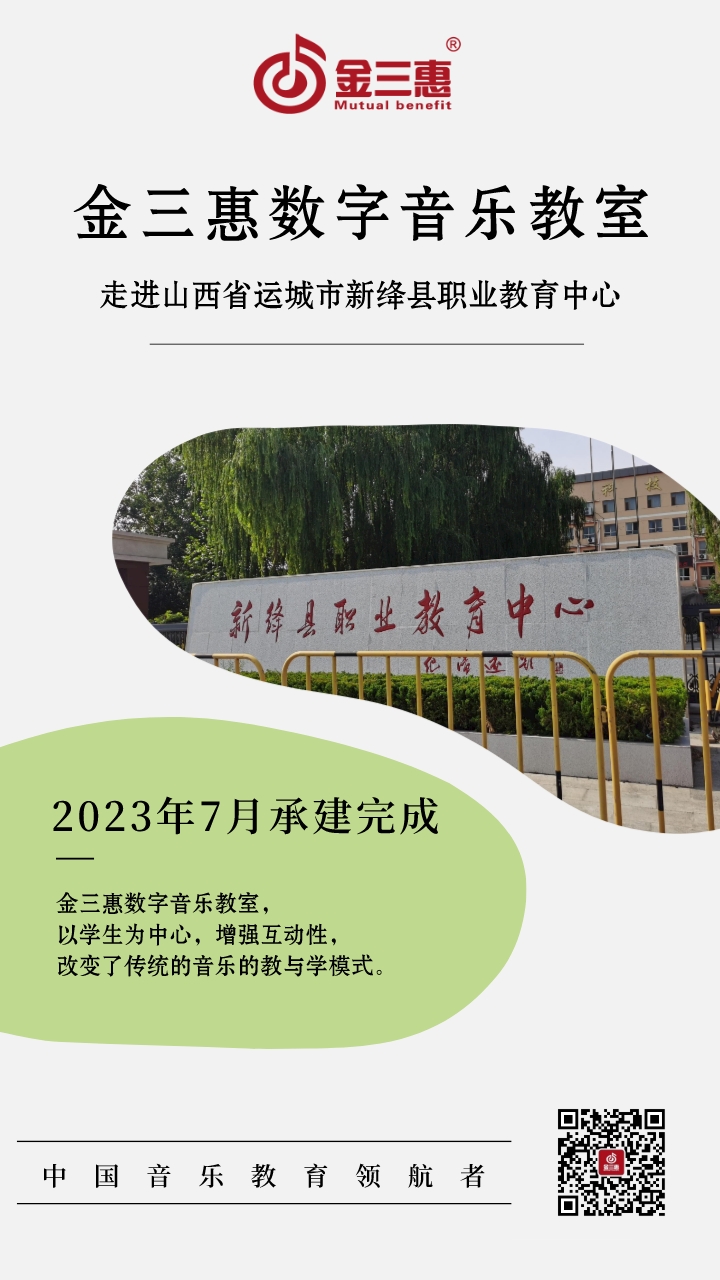 2023年7月,金三惠依據(jù)客戶需求,為山西省運(yùn)城市新絳縣職業(yè)教育中心(以下簡(jiǎn)稱:新絳縣職業(yè)教育中心)提供安裝的舞蹈教室正式開始使用!教室內(nèi)配備了金三惠數(shù)字音樂(lè)教學(xué)系統(tǒng)、配套器材和教學(xué)教具。