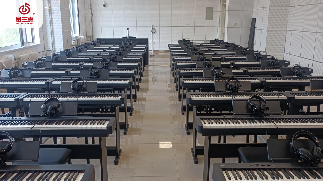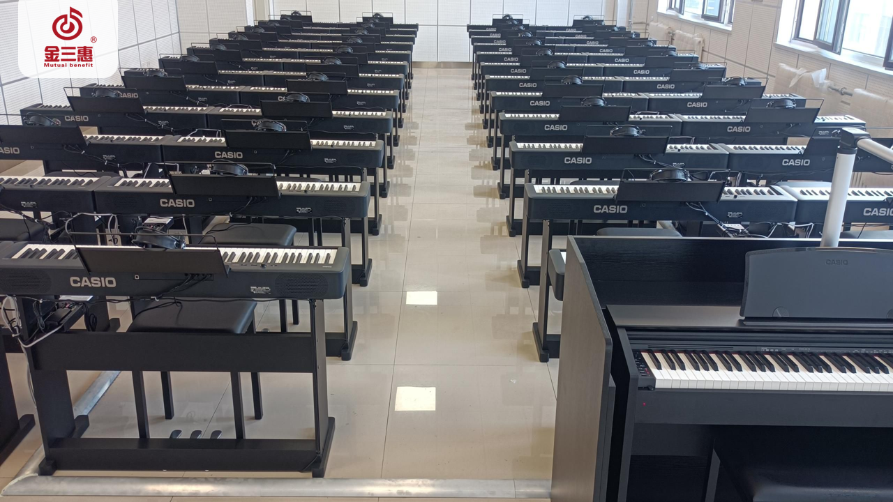 天津市寧河區蘆臺鎮第二小學攜手北京金三惠科技有限公司為學生提供了48+1的電鋼琴教室,配備了金三惠電鋼琴教學系統、電鋼琴、數字音樂教學儀等教學教具。
