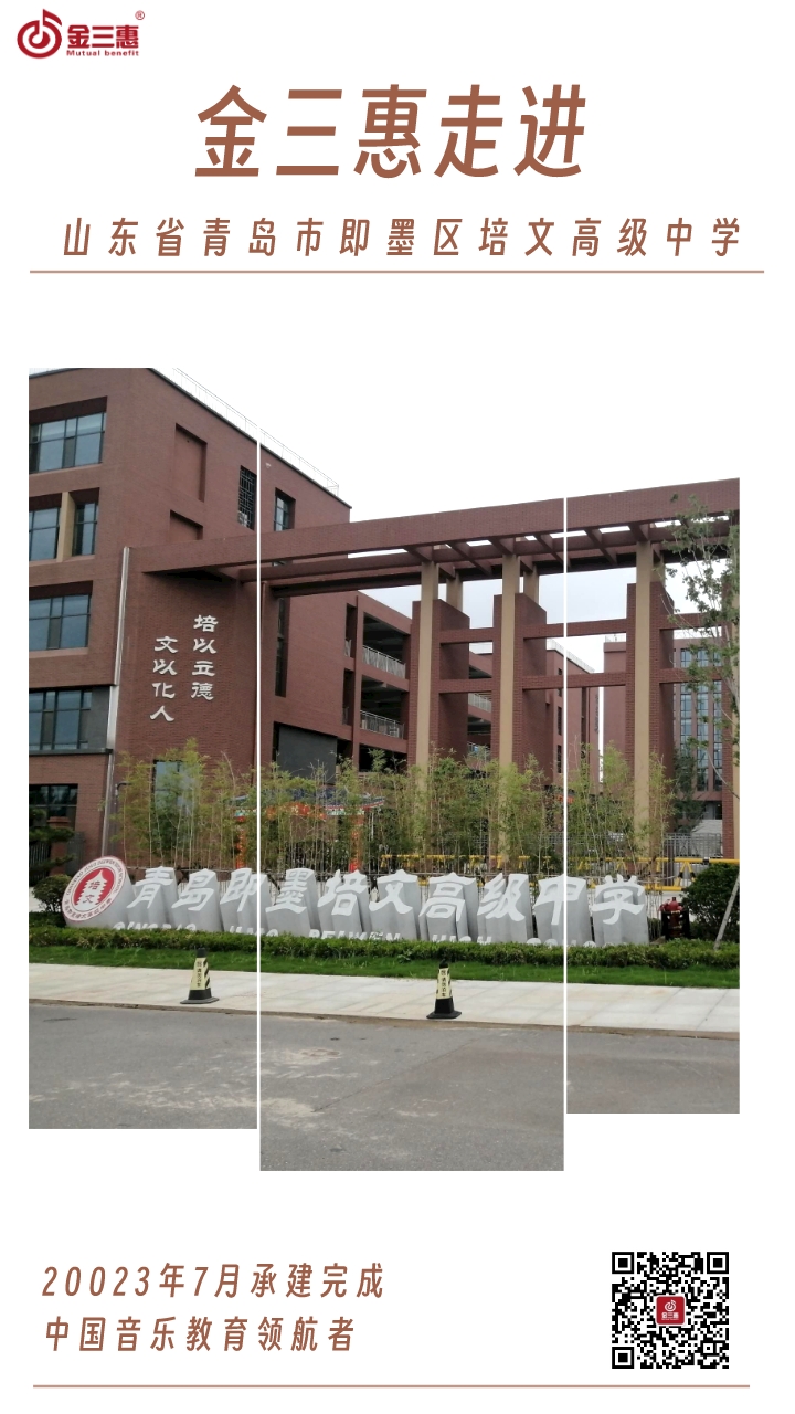 2023年7月,金三惠數字音樂教室走進山東省青島市即墨區培文高級中學,為學生提供了24+1的電鋼琴教室,配備了金三惠電鋼琴教學系統、電鋼琴、數字音樂教學儀等教學教具等。