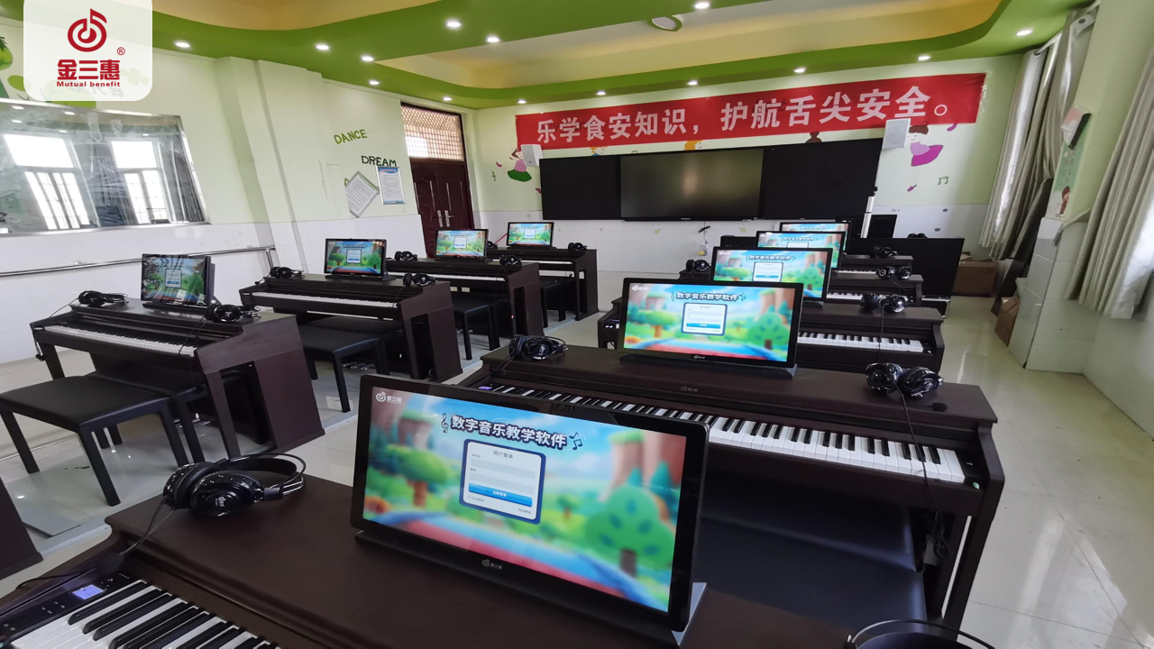 2023年8月,金三惠數字音樂教室為河南省鄭州市滎陽市豫龍鎮第一小學提供、安裝、培訓的12+1智慧創客音樂教室正式開始使用!配備了金三惠教學系統、電鋼琴、數字音樂教學儀等教學教具。