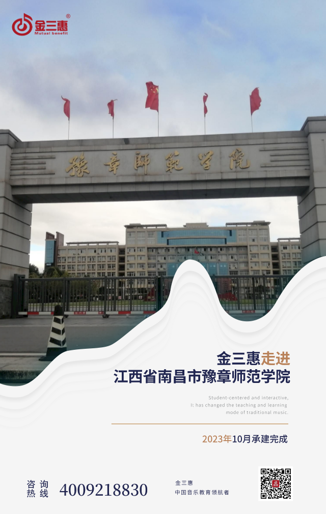 2023年10月,金三惠數字音樂教室走進江西省南昌市豫章師范學院,為學生提供了40+1的電鋼琴教室2間配備了金三惠電鋼琴教學系統、電鋼琴、數字音樂教學儀等教學教具等。電鋼琴室-金三惠 (jinsanhui.com)