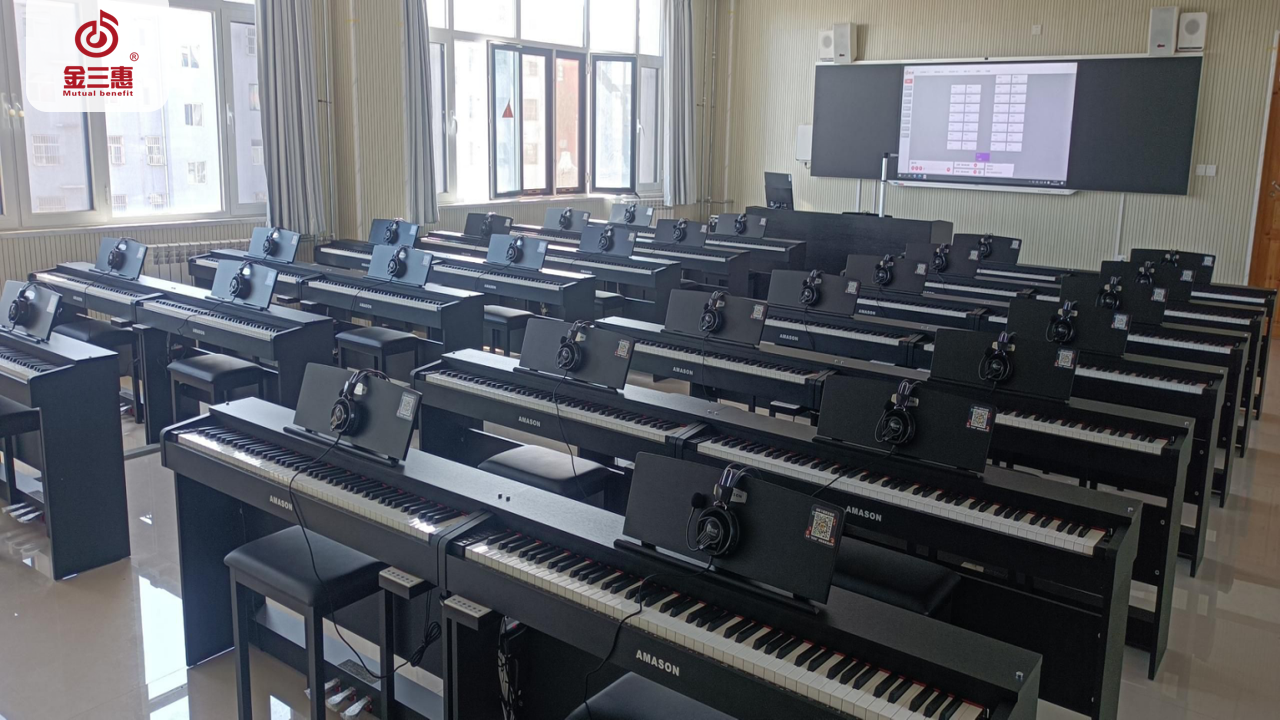 2023年10月,金三惠數字音樂教室走進陜西省榆林市橫山區第七小學,為學生提供了30+1的電鋼琴教室配備了金三惠電鋼琴教學系統、電鋼琴、數字音樂教學儀等教學教具等。電鋼琴室-金三惠 (jinsanhui.com)
