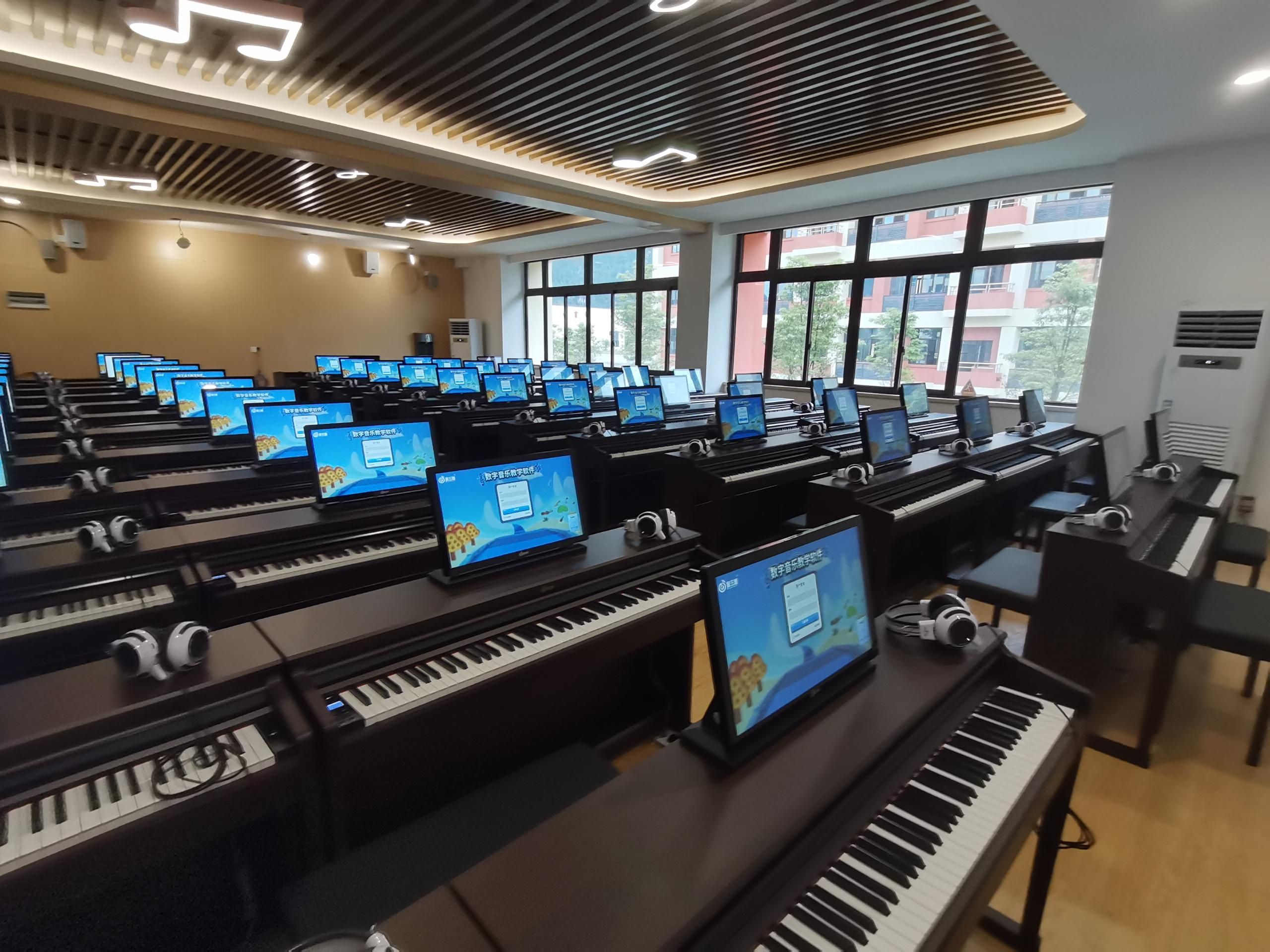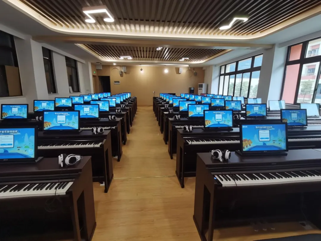 2024年8月,金三惠數字音樂教室為重慶市酉州高級中學提供、安裝、培訓的56+1智慧音樂素養教室正式開始使用!配備了金三惠教學系統、電鋼琴、數字音樂教學儀等教學教具。