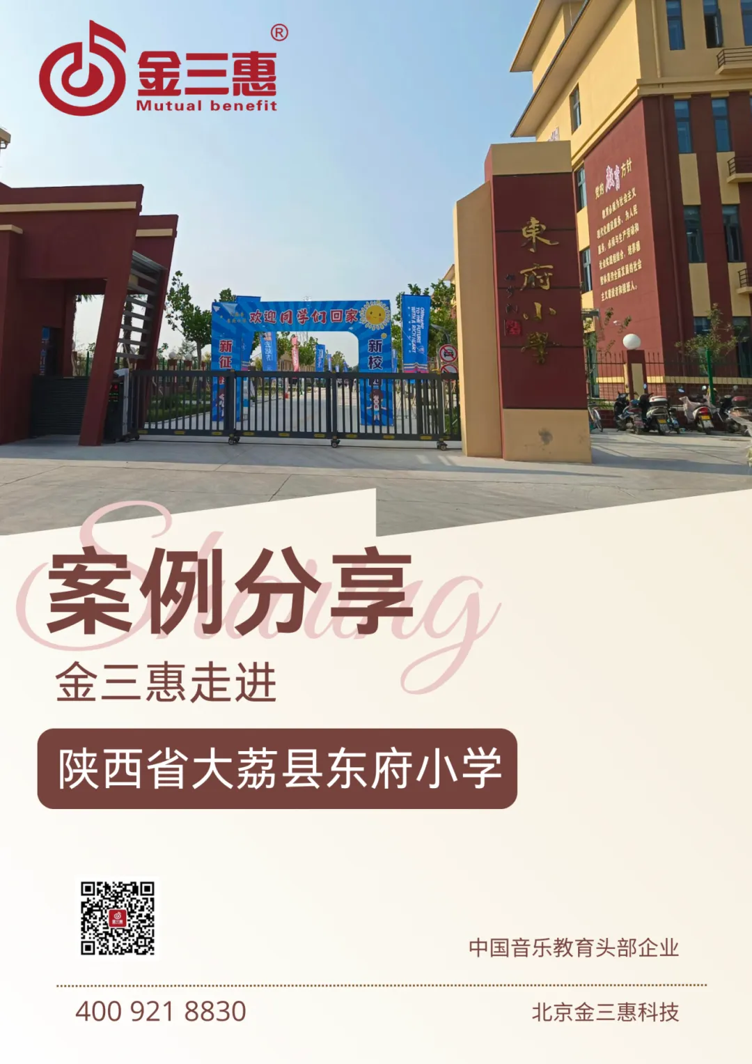 2024年9月,金三惠數字音樂教室走進陜西省渭南市大荔縣東府小學,為學校提供了30+1的電鋼琴教室,配備了金三惠電鋼琴教學系統、電鋼琴、數字音樂教學儀等教學教具等。