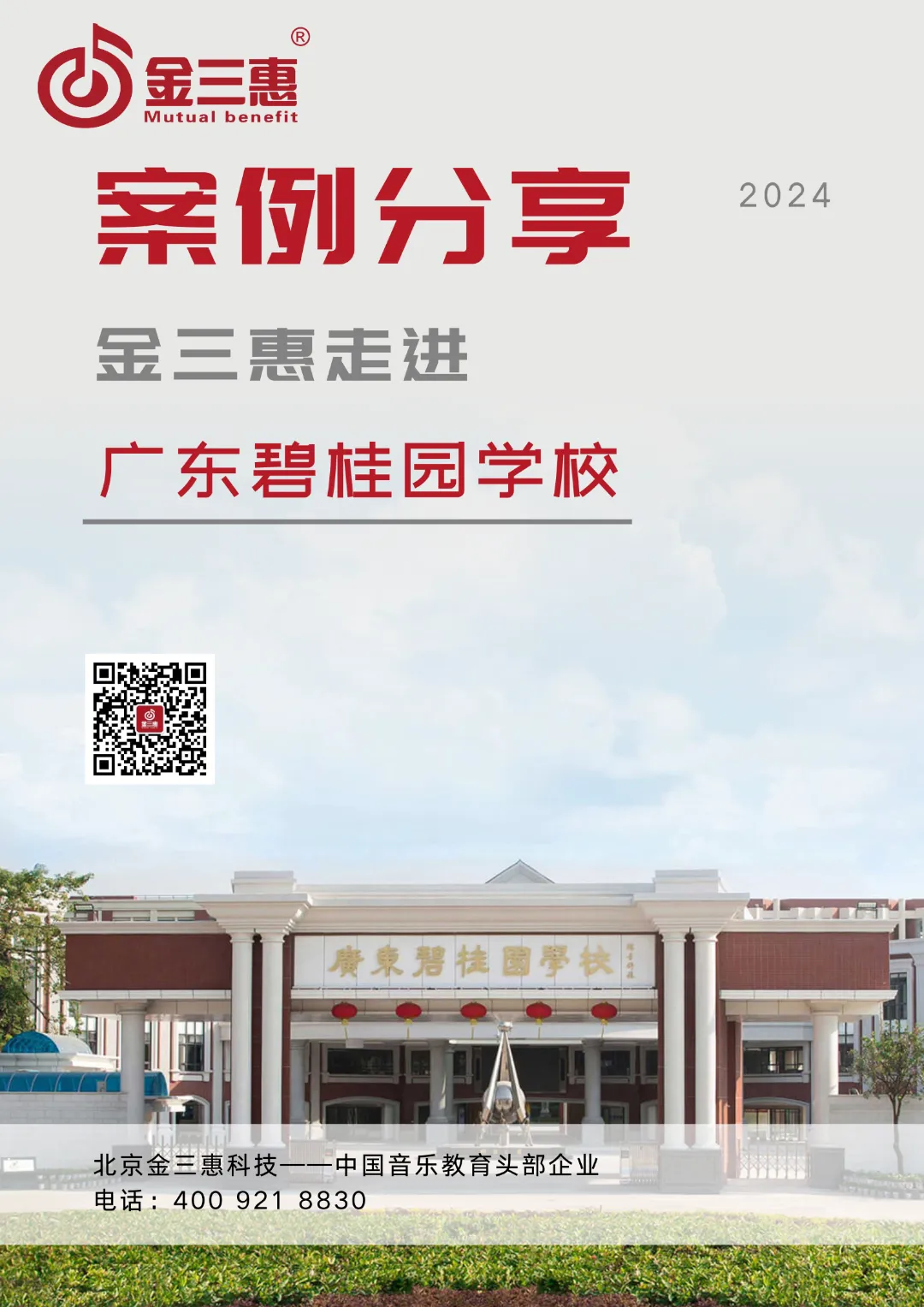 2024年9月,金三惠數字音樂教室走進廣東碧桂園學校,為學校提供了28+1的智慧音樂素養教室,配備了金三惠教學系統、電鋼琴、數字音樂教學儀等教學教具。