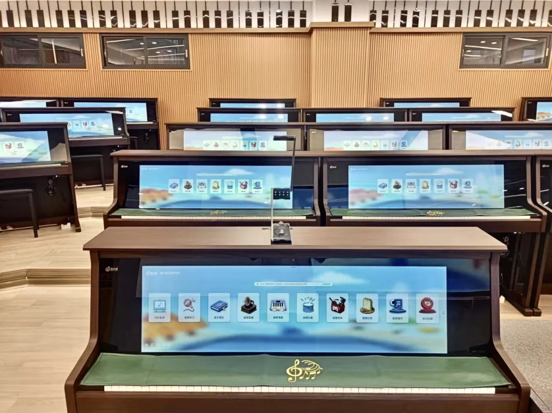 智慧音樂素養教室構建了智慧平臺+智能硬件+數字資源+智能管控+教學評價的全場景學習生態。通過AI技術的應用,打造AI+鋼琴、AI+小樂器、AI智能歌唱等智能化學習方式,全方位,多維度的實現學生的音樂探索和學習,既滿足義務教育階段的教學要求,也同時支持中高職院校教學與實訓的需求。