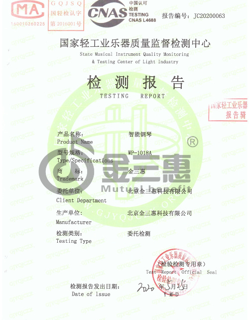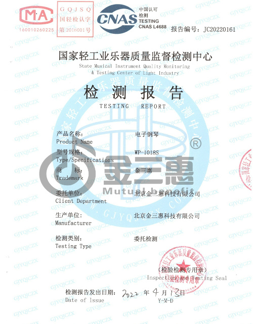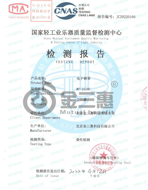 電子鋼琴 國家輕工業樂器質量監督檢測報告