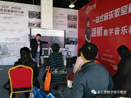 展會上金三惠產品受到各位領導及校長的關注,市教育局局長楊華云在金三惠展廳表示“希望金三惠的產品裝到每個農村學校,讓我們沒有音樂老師的學校能上專業的音樂課“,這是對金三惠最大的贊揚和肯定;展會上大家聽說有音樂教學的展示,大家口口相傳紛紛前來觀摩學習,金三惠得到各位校長和音樂老師的認同和喜歡,展位現場十分火爆!